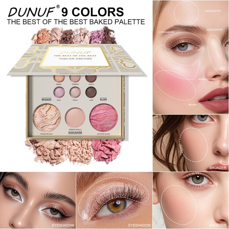 DUNUF The Best of the Best Baked Palette - Full Size - Includes Bronzer, Blush, Highlighter and 6 Eyeshadows - Travel-Friendly